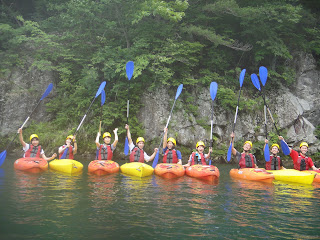 ナベさんもラフティングで頑張ってます。間もなく社内検定ですね。